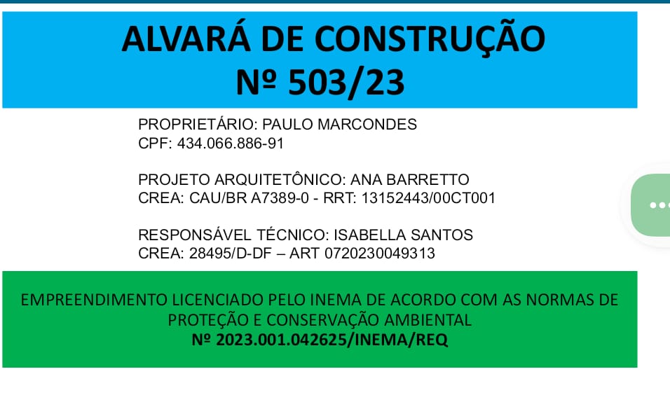 Ela também enviou documentação que atesta a legalidade da obra em Maraú.